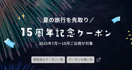 • 15,000ポイント還元キャンペーン エントリー・予約対象期間:2025年6月2日(月)09:59まで