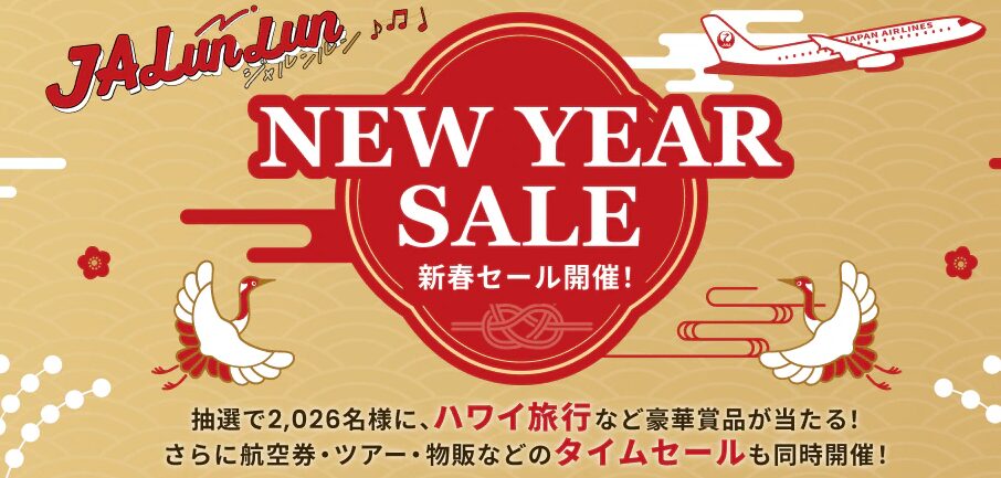 JALは*2026年2月1日(日)~3月28日(土)までの国内線航空券を対象とした「JALunLun 新春セール 2026」のタイムセールを、2026年1月7日(水)0時0分~1月8日(木)23時59分の2日間限定で開催することを発表しました。春の旅行や帰省にもってこいのセールとなっています。