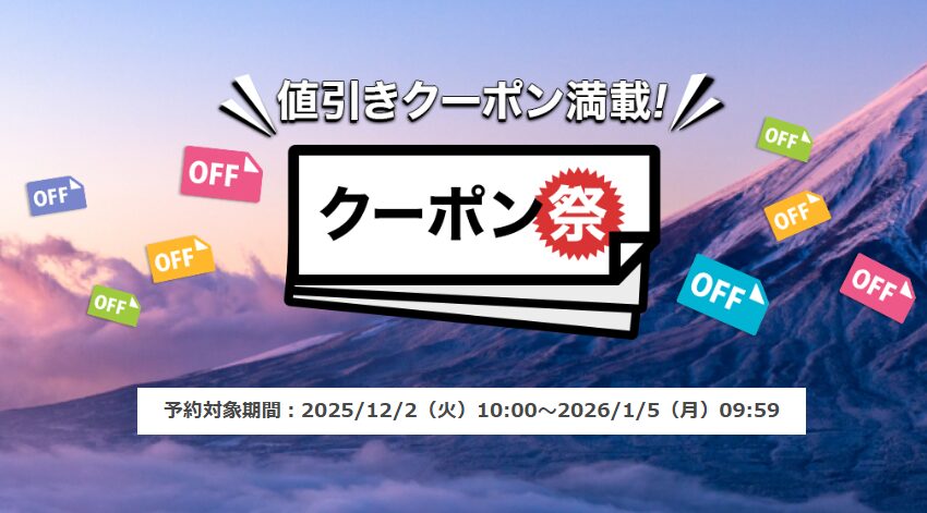 - クーポン祭:2025年1月6日まで