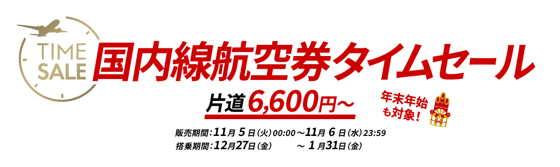 JALタイムセール!国内線対象で羽田~伊丹線が6,600円から